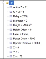 - In the Active Tool dropdown, pick the correct tooling (e.g., T11).