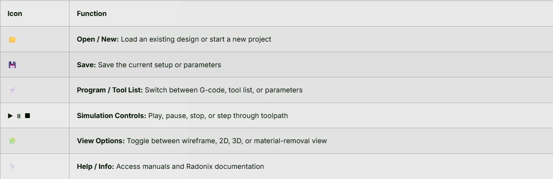 - Save Project: Use the save icon or File → Save As to store the project, including tool data and machine settings.