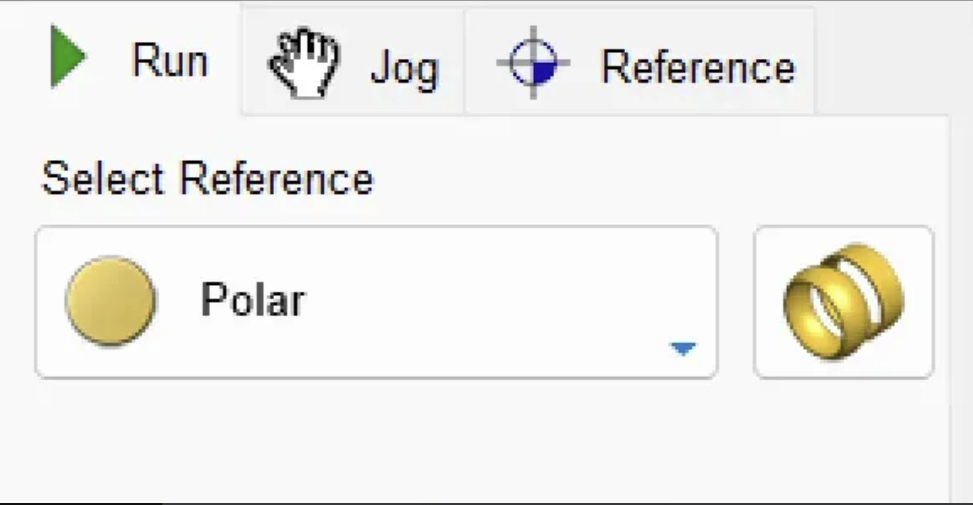 2.4 Reference Modes & Diameter Settings Select Reference (Polar / Cartesian): Choose between coordinate systems depending on design type. Polar is ideal for bangle and ring operations; Cartesian for flat or linear tasks.
