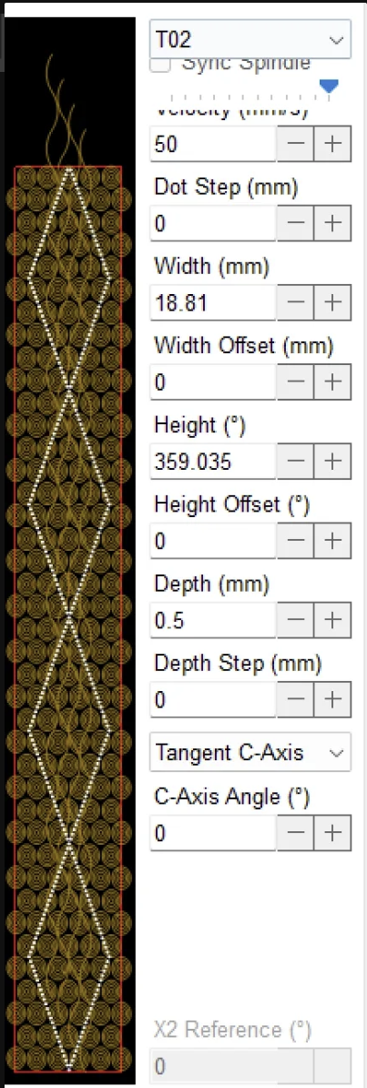 Diameter (mm): Sets the actual diameter of the bangle or cylindrical workpiece. Adjusting this ensures that the simulation matches real-world proportions.