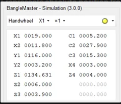 - Jog Mode: Click Jog to manually move the virtual machine axes. This is especially helpful for verifying safe distances or checking clearances around the bangle blank.