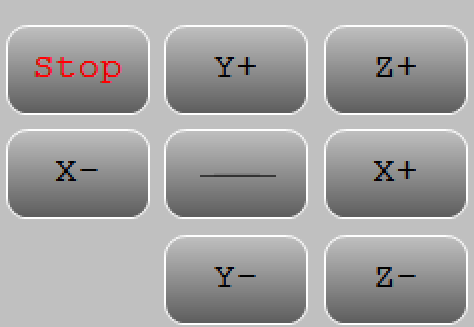 - Arrows (X+, X-, Y+, Y-): These buttons manually jog the machine along the X and Y axes, allowing for precise positioning adjustments by moving the tool head incrementally.