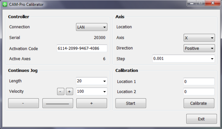 Please note that if the activation code has not been entered, an error message will be displayed when opening the CAM‑Pro Calibrator software.