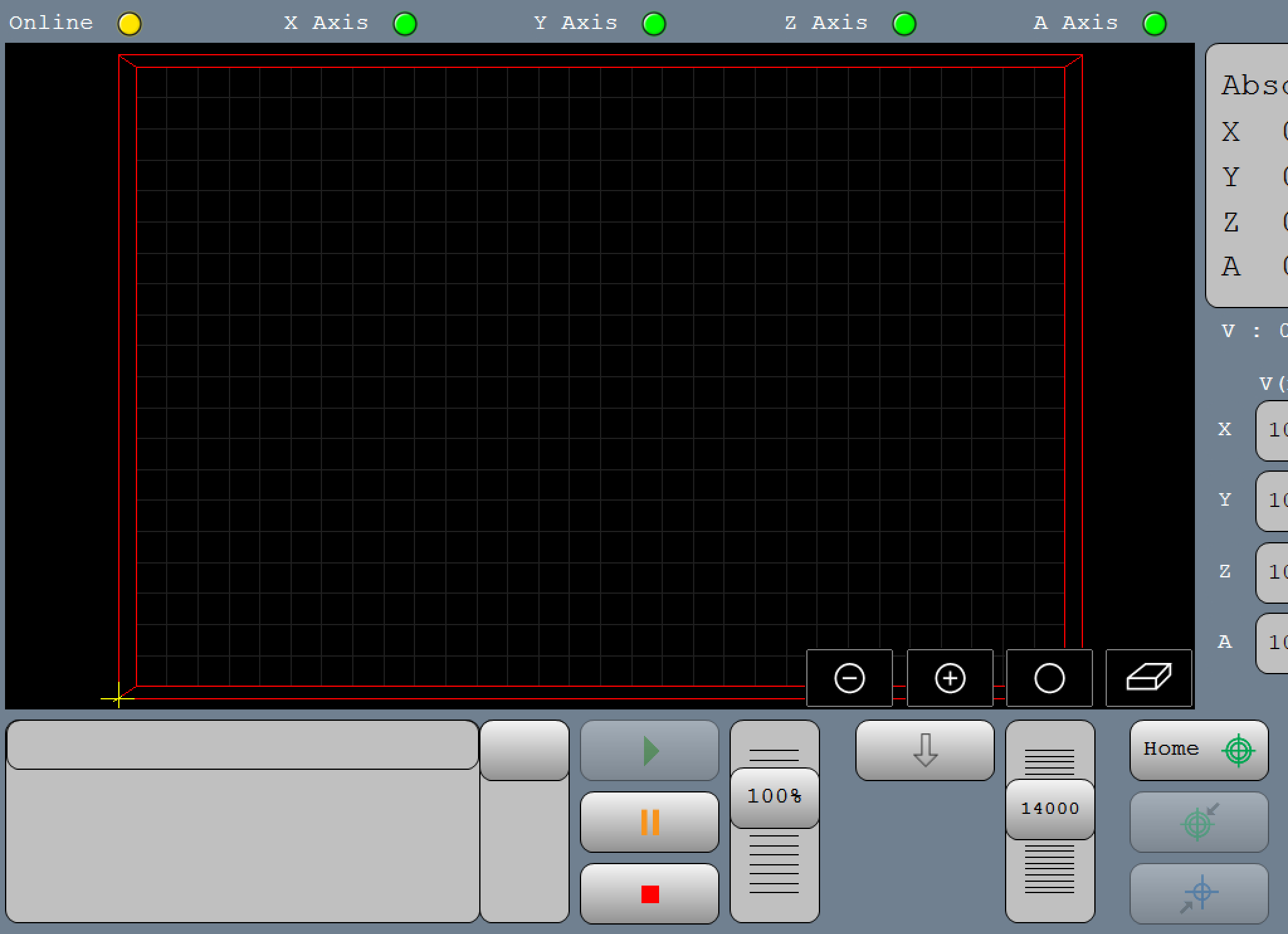 Velocity (Below Relative Position): Shows the current operational speed in mm/s, useful for monitoring real-time cutting or movement speeds.(FAQ)