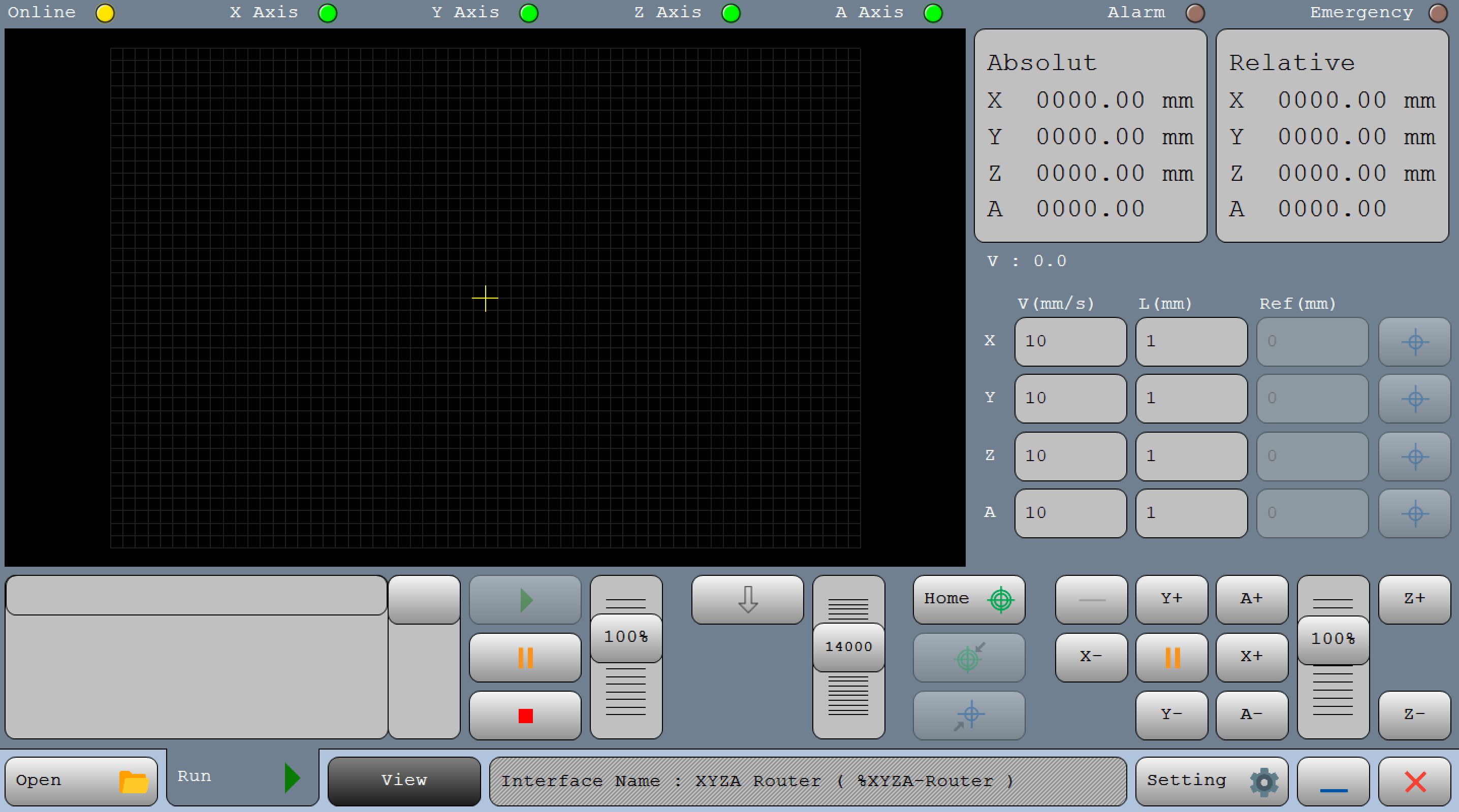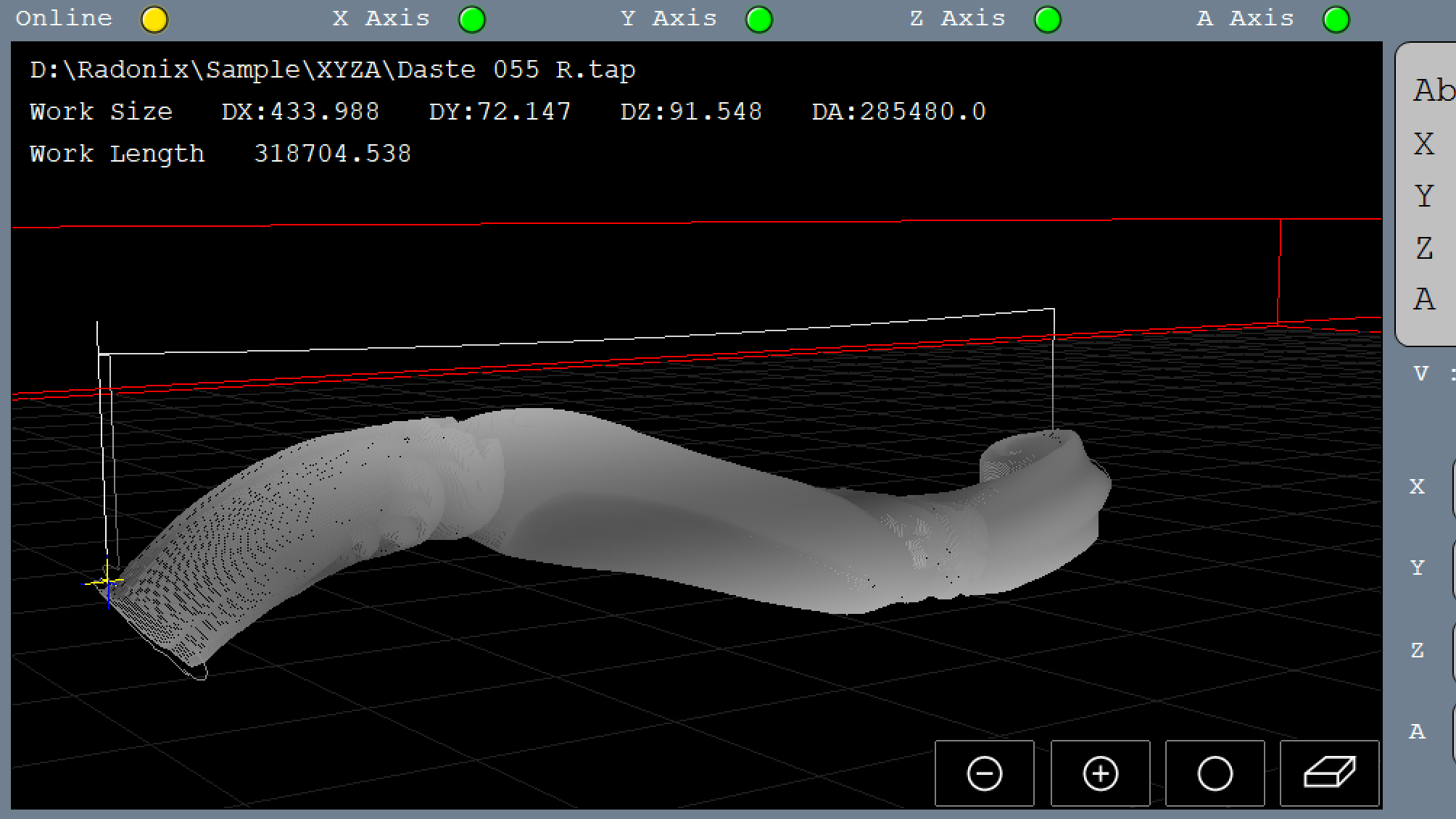 The XYZA Router-TC interface serves as an advanced user interface for four-axis CNC machines. In these machines, the X, Y, and Z axes are used for three-dimensional movements, while the fourth axis, called the rotary axis (or axis A), adds