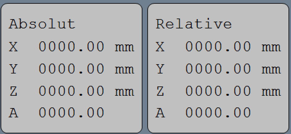 Absolute: Displays the coordinates of the axes in reference to thehome point.(FAQ)