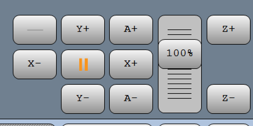 - Arrows (X+, X-, Y+, Y-): These buttons manually jog the machine along the X and Y axes, allowing for precise positioning adjustments by moving the tool head incrementally.